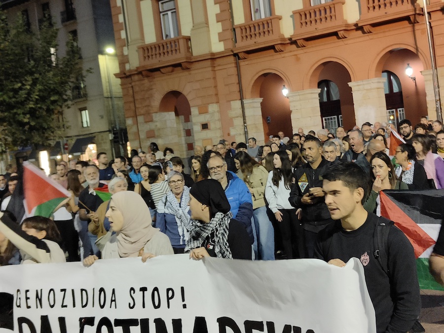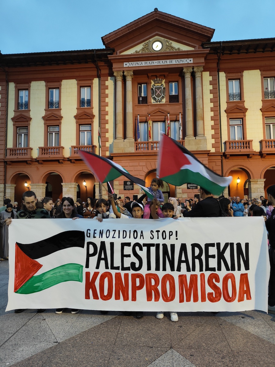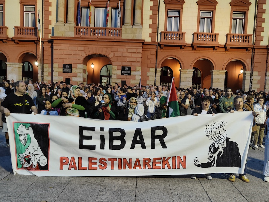 Gernika Palestina herri ekimenak antolatuta, arratsaldeko 19:30ean burrunbak egin dira Euskal Herriko herri guztietatako plazetan, baita Eibarren ere, Palestinarekin Konpromisoa. Genozidioa STOP! lelopean. Eguerdian egin den elkarretaratzean bezala, arratsaldeko ekitaldian ere eibartar mordoak hartu du parte, Palestinako herriari elkartasuna adierazteko. Amaieran Gernika Palestinak gaurko egunaren harira egin duen komunikatua irakurri da, plazan bildutako jende guztiaren aurrean.