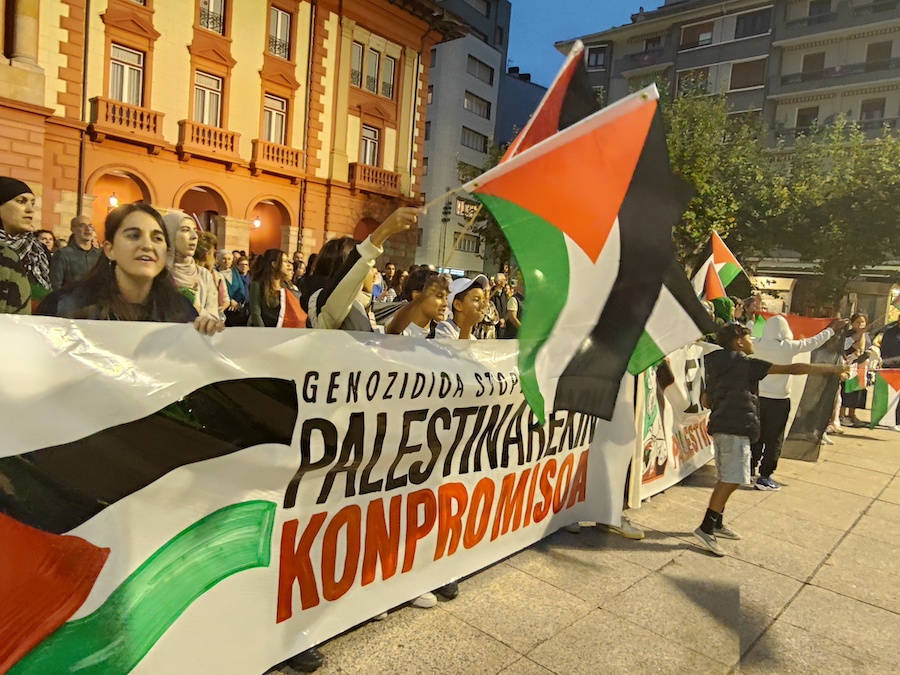Palestinaren aldeko burrunbak egin dira herri guztietan.