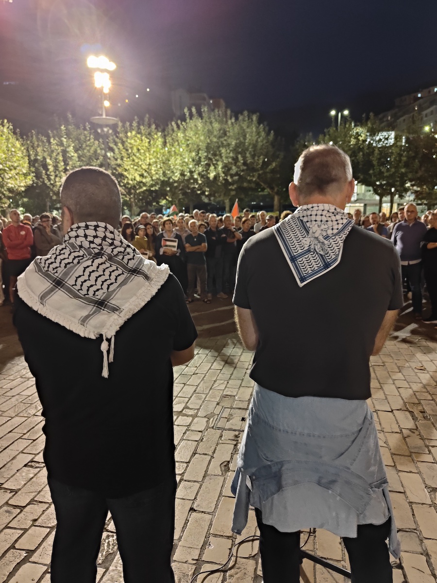 Arratsaldean ere ehundaka eibartar elkartu dira Untzagan, Gernika Palestina herri ekimenak egindako deiari erantzunez