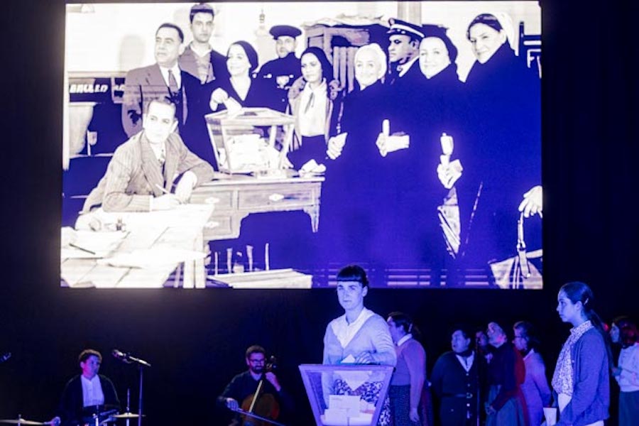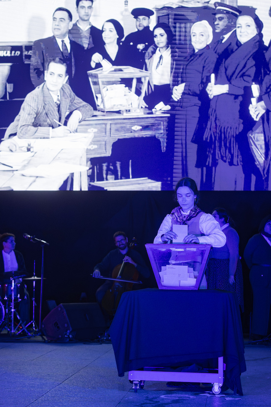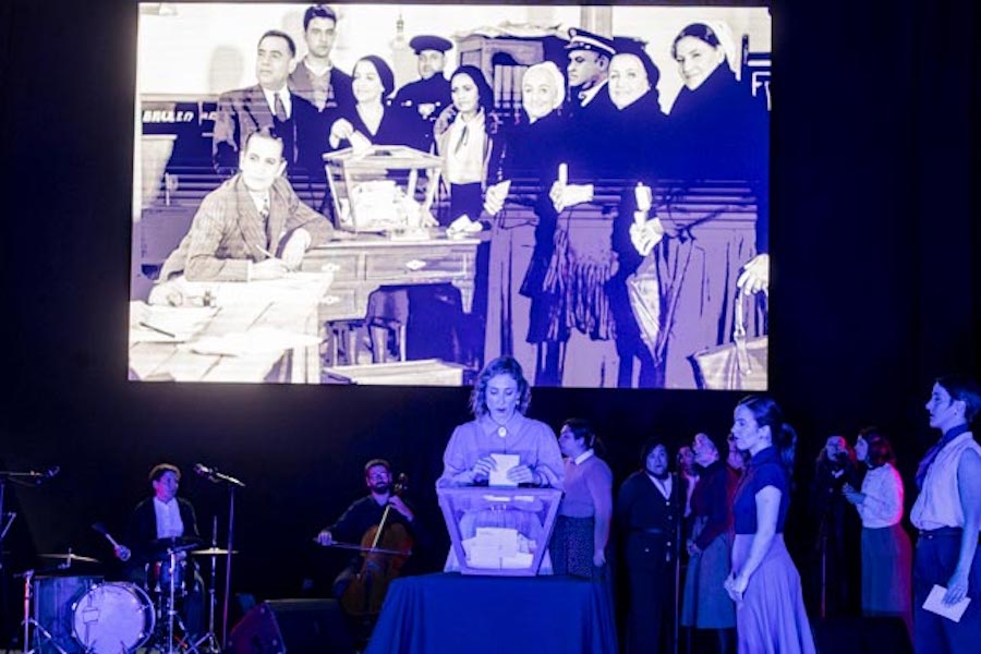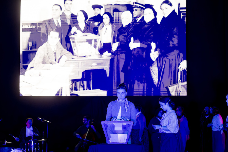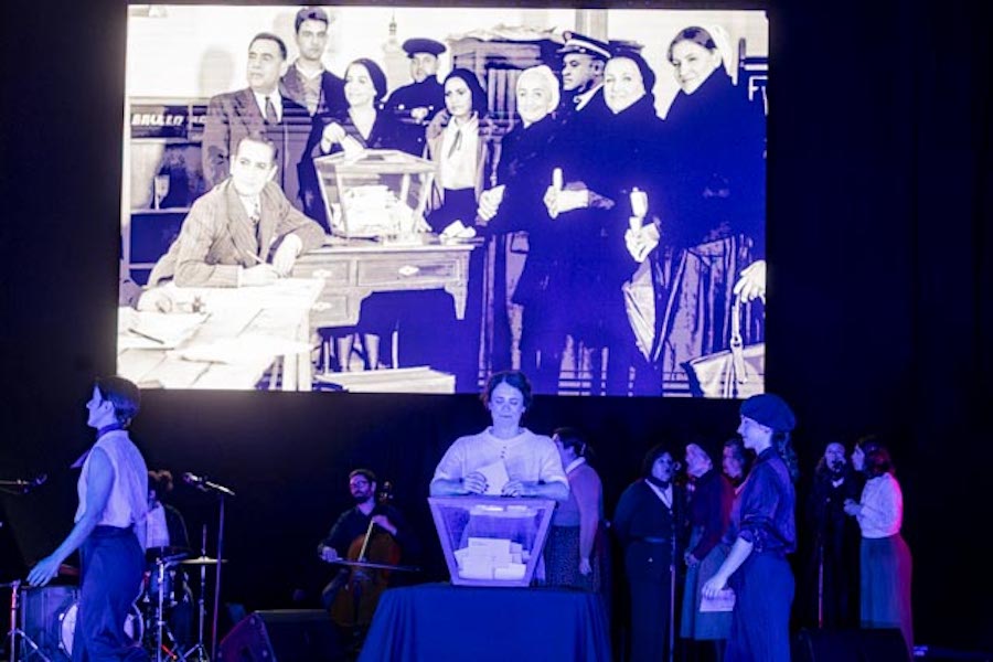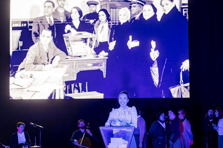 Indalezio Ojangurenek 1933an atera zuen argazkia, emakume eibartarrek lehenengoz bozkatu zuteneko argazki ezaguna oinarri bezala duen ikuskizunean Eibarko artista ugarik hartzen dute parte, eta aktoreekin batera zuzeneko musika eta dantzak eskaintzen dituzten hainbat taldek hartzen dute parte: Irene Hernando (dramaturgia eta zuzendaritza), Andrea Covadonga, Irati Sampayo, Rita Martin eta Gorka Errasti (aktoreak), Quico Puges (musika), Kaxa, Os Galaicos eta Kezka dantza taldeak (koreografiak), Eibarko abesbatza ezberdinetatik etorritako emakumeak (ahotsak)…