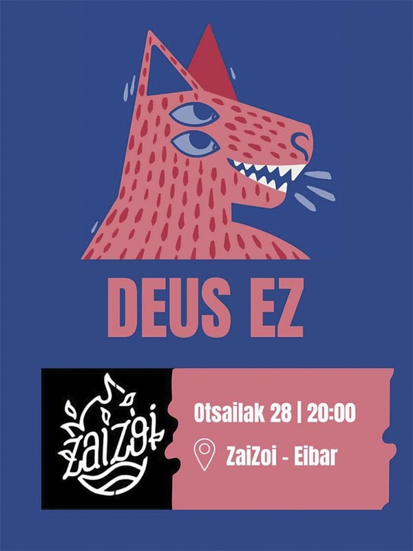 Arrazoi ezberdinengatik eszenatokietatik urruti ibili den Deus Ez taldea itzuli egin da, indartsu eta disko berriarekin, Zain izeneko lanarekin. Iaz, urte amaieran kaleratu zuten lana, baina oraindik ez dute zuzeneko aurkezpenik egin. Lana ezagutarazteko lehen kontzertua, beraz, bihar (zapatua, otsailak 28) 20:00etatik aurrera Zai-zoi tabernan emango dutena izango da.