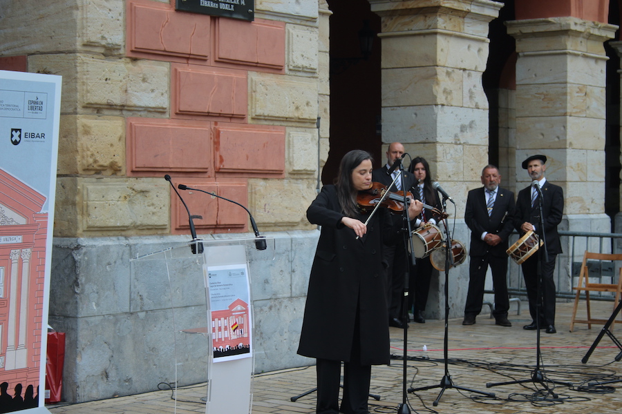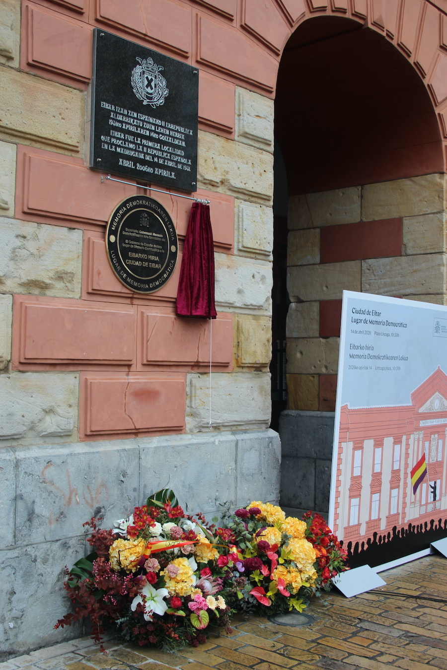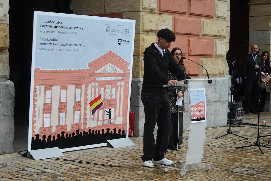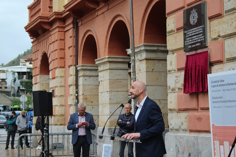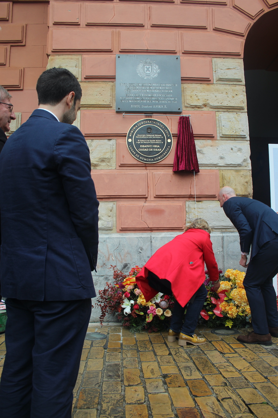 Espainiako Gobernuak eta Eibarko Udalak Eibarko Hiria Memoria Demokratikoaren Leku izendatzen duen oroitzapenezko plaka jarri dute udaletxeko fatxadan, gaur goizean Untzaga plazak hartu duen ekitaldi instituzionalean. Gure herriari egin zaion aitortza hori aurreko astelehenean argitaratu zen Estatuko Aldizkari Ofizialean. Gaurko ekitaldian Espainiako Gobernuko eta Eusko Jaurlaritzako ordezkariek hartu dute parte, Eibarko udal ordezkariekin batera. Horrela, Eibarrekin lotura berezia duen Pablo Bustinduy (1931ko apirilaren 14an Bigarren Errepublika aldarrikatu zenean, Eibarko zinegotzia zen Gregorio Bustinduyren biloba da) Gizarte Eskubide, Kontsumo eta 2030 Agendako ministroa, Fernando Martinez Memoria Demokratikoaren Estatuko idazkaria, Jon Iraola Eibarko alkatea, Marisol Garmendia Espainiako Gobernuko Euskal Herriko ordezkaria eta Arritxu Marañon Eusko Jaurlaritzako Giza Eskubideen, Memoriaren eta Bizikidetzaren Sailburuordea izan dira ekitaldian, beste hainbat agintari, erakunde-ordezkari eta herriko elkarte memorialistarekin batera.