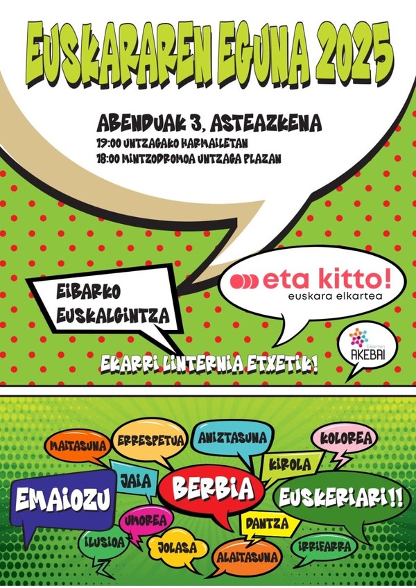Abenduaren 3an Euskararen Nazioarteko Eguna ospatzen da eta, urtero bezala, Eibarko hainbat talde, elkarte eta eragile (Eibarren Akebai, Euskalgintza taldea, …eta kitto! Euskara Elkartea, Udal Euskaltegia, AEK eta Udaleko Euskara Zerbitzua) elkarlanean aritu dira, egun horretako arratsaldea girotzeko.