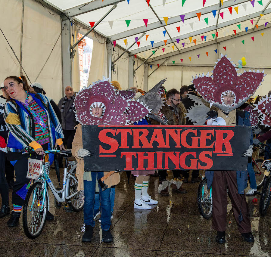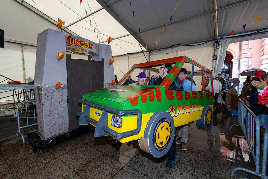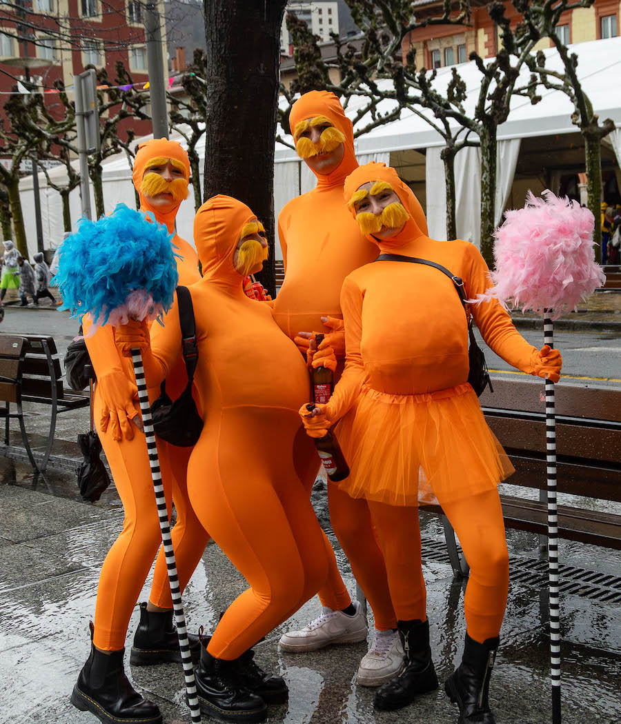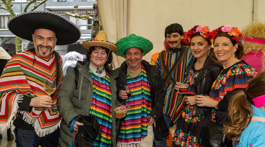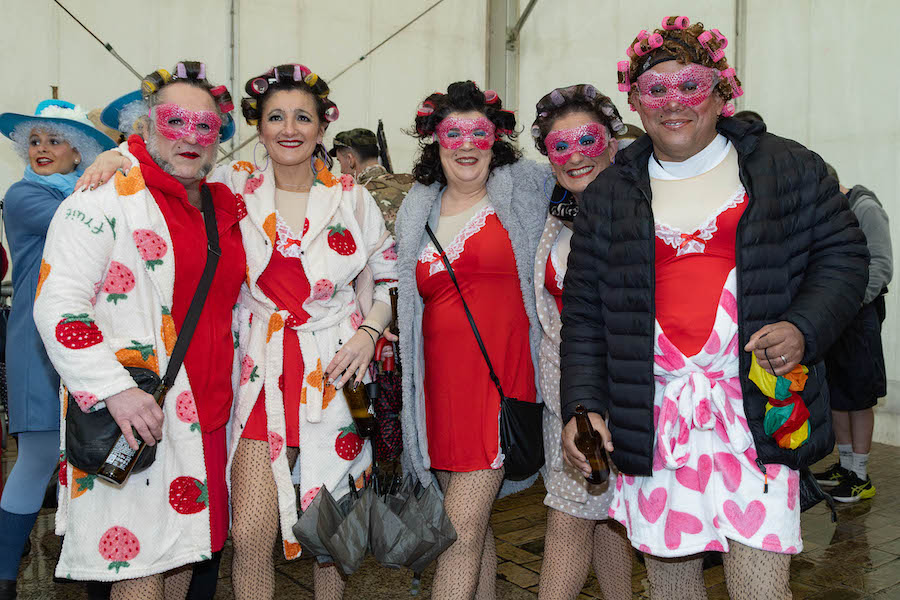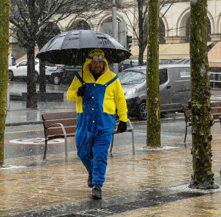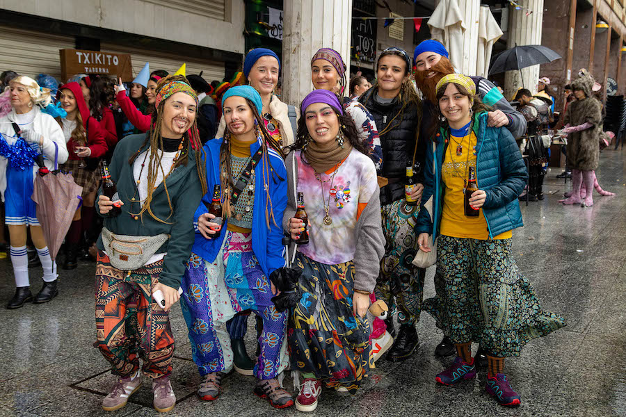 Egun osoan zehar etenbarik joan-etorrian ibilitako euri zaparradek ez zuten festa zapuztu, eta giro bikaina nagusitu zen Eibarren Aratoste Zapatuan, hori bai, jendeak Untzagako karparen eta inguruko arkupeen babes bila ospatu zuen eguna. Eguerditik aurrera kaleak koko-jantzi koloretsuz bete ziren, eta eguraldi grisari umorez eta sormenez erantzun zioten eibartarrek. Guardasolak eta zirak mozorroen osagarri bilakatu ziren, eta familia zein lagunarteko ospakizunek ez zuten etenik izan.