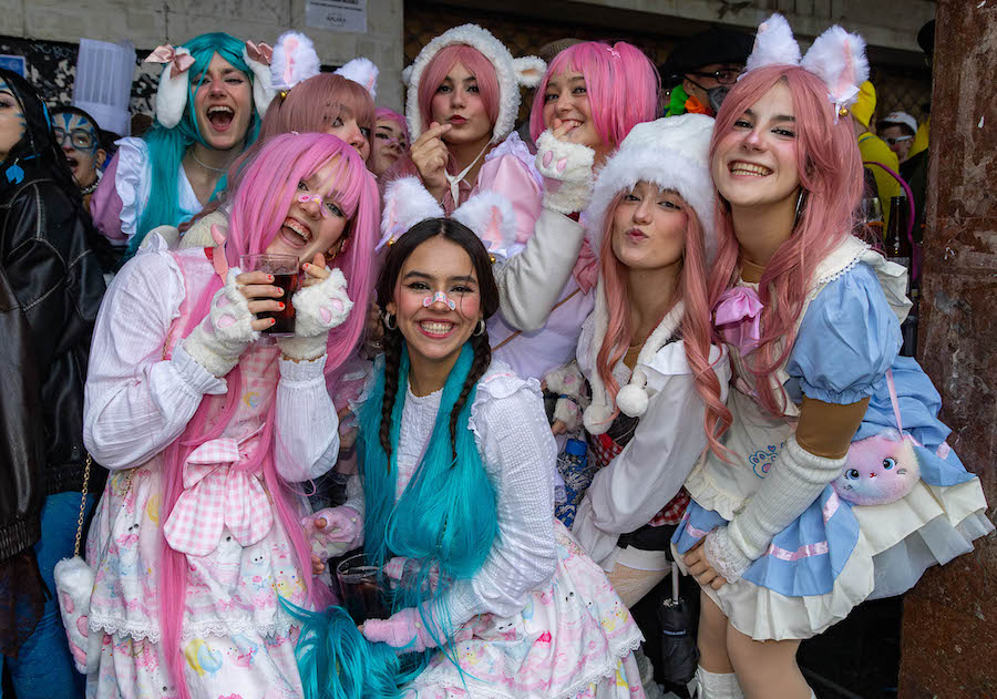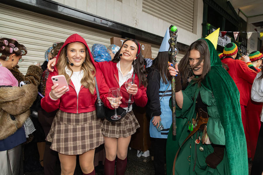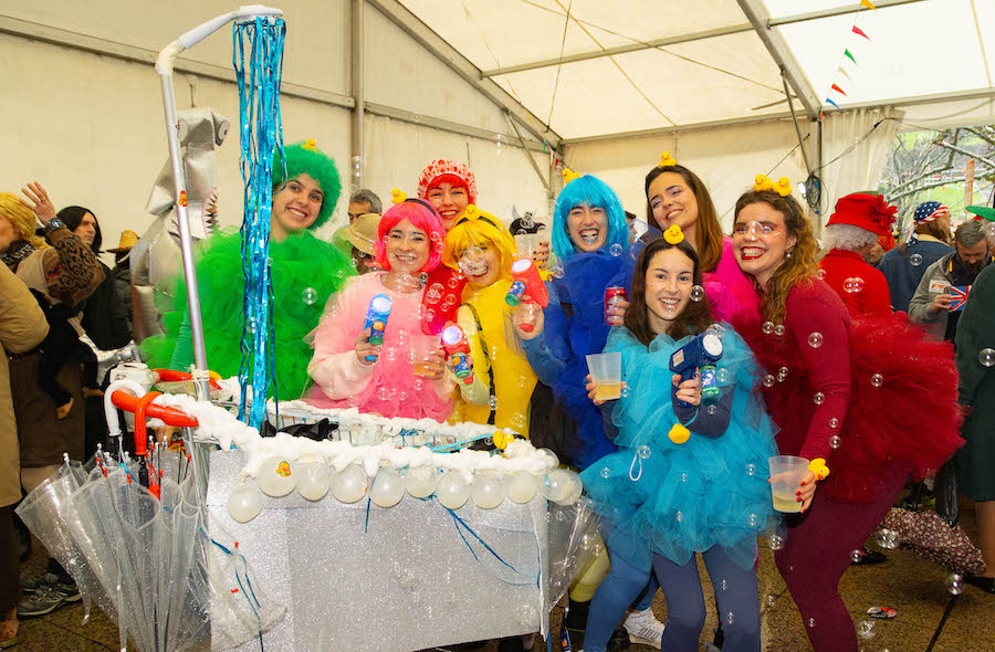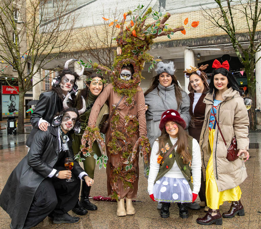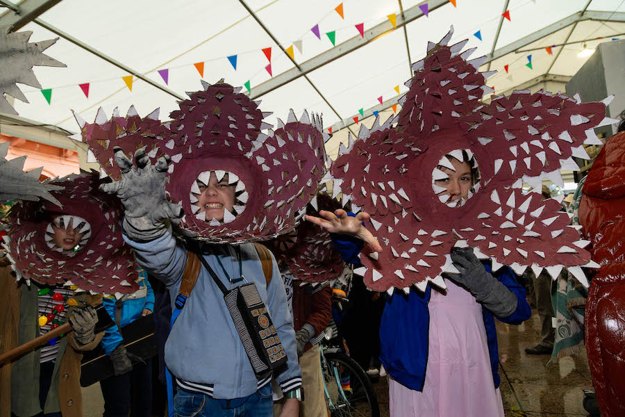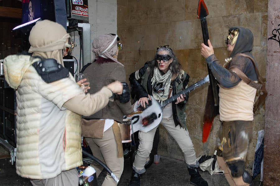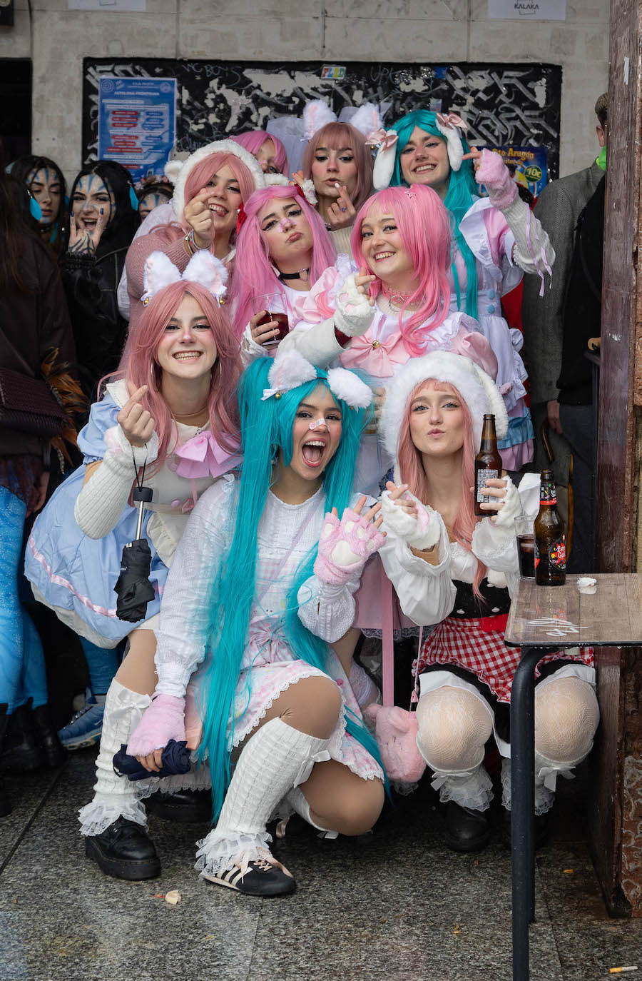 Egun osoan zehar etenbarik joan-etorrian ibilitako euri zaparradek ez zuten festa zapuztu, eta giro bikaina nagusitu zen Eibarren Aratoste Zapatuan, hori bai, jendeak Untzagako karparen eta inguruko arkupeen babes bila ospatu zuen eguna. Eguerditik aurrera kaleak koko-jantzi koloretsuz bete ziren, eta eguraldi grisari umorez eta sormenez erantzun zioten eibartarrek. Guardasolak eta zirak mozorroen osagarri bilakatu ziren, eta familia zein lagunarteko ospakizunek ez zuten etenik izan.