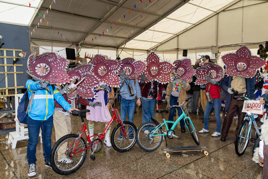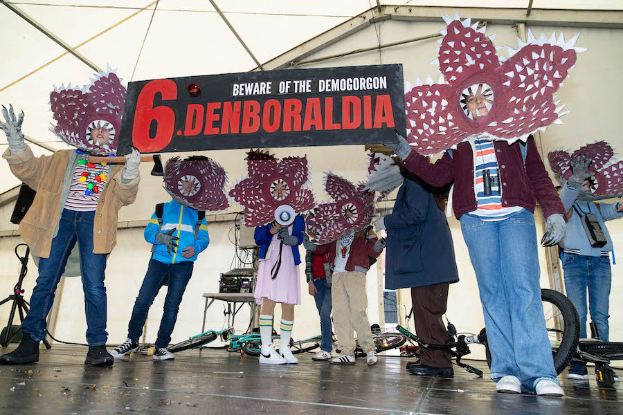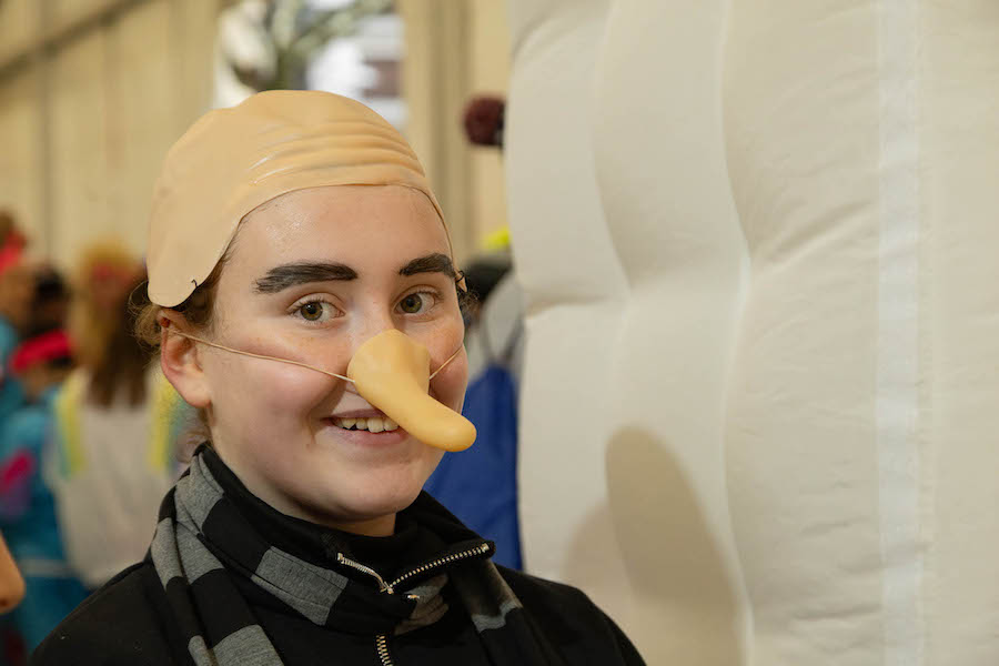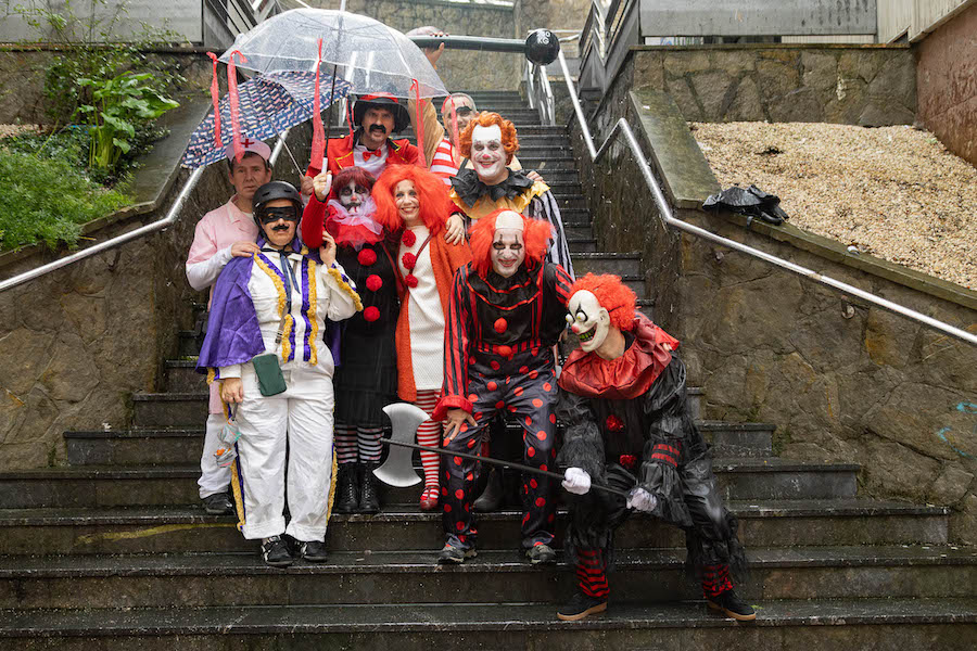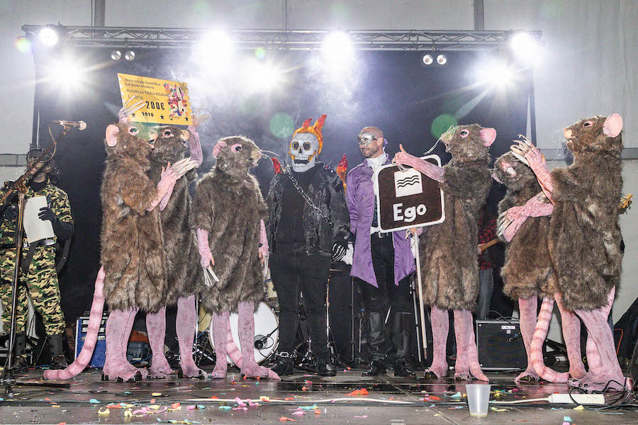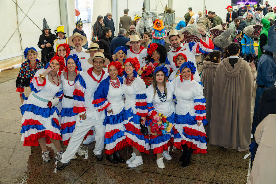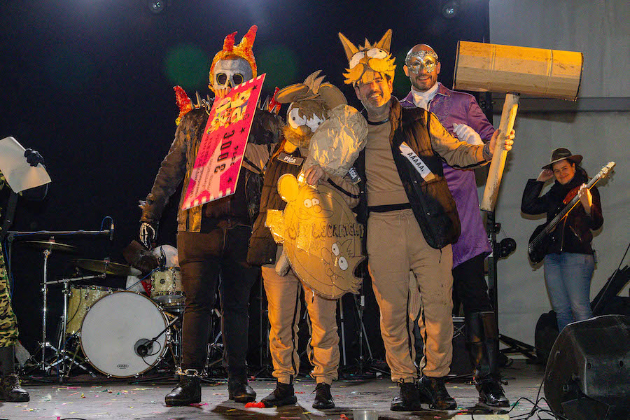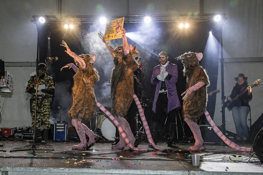 Egun osoan zehar etenbarik joan-etorrian ibilitako euri zaparradek ez zuten festa zapuztu, eta giro bikaina nagusitu zen Eibarren Aratoste Zapatuan, hori bai, jendeak Untzagako karparen eta inguruko arkupeen babes bila ospatu zuen eguna. Eguerditik aurrera kaleak koko-jantzi koloretsuz bete ziren, eta eguraldi grisari umorez eta sormenez erantzun zioten eibartarrek. Guardasolak eta zirak mozorroen osagarri bilakatu ziren, eta familia zein lagunarteko ospakizunek ez zuten etenik izan.