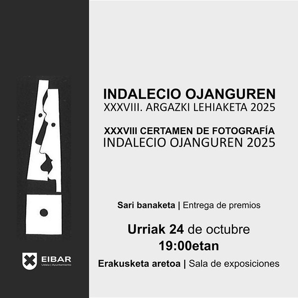 Gaur arratsaldean banatuko dituzte Indalecio Ojanguren XXXVIII. Argazki Lehiaketako sariak Portalean, erakusketa-gelan, 19:00etan hasiko den ekitaldian. Horrekin batera, erakusketa zabalduko dute bertan, edizio honetan saritutako argazkiekin eta antolatzaileek aukeratu dituzten beste lan batzuekin. Azaroaren 16ra arte egongo da ikustera joateko aukera, ohiko ordutegian.