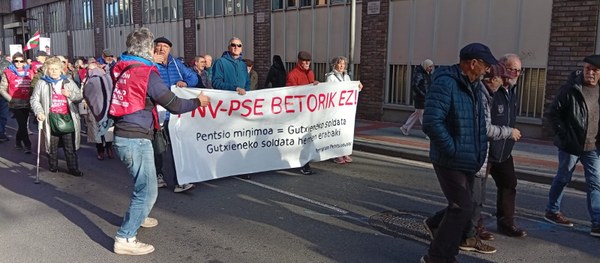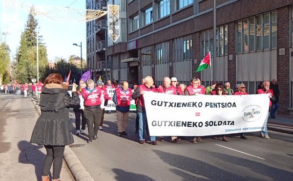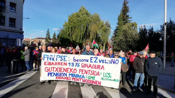 Euskal Herriko Pentsiodunen Mugimenduaren deialdiarekin bat eginez, 2.500 bat pentsiodun elkartu ziren aurreko eguenean (abenduak 18) Gasteizen, tartean Eibartik bertara joan ziren andra-gizonak. Manifestazioa Bilbo plazan hasi zen, eta hiriburuko hainbat kale zeharkatu zituen. Pentsiodunen ordezkariek adierazi dutenez, “Legebiltzarraren egoitzaren aurretik igarotzean, 10 bat minutuz gelditu zen manifestazioa, eta errebindikazio garrasiak entzun ziren. Pentsiodun talde batek hutsik zeuden poltsak jarri zituen burdin sareetan, pentsioen igoera erosketa-saskiaren igoeraren oso azpitik dagoela adieraziz, eta, beraz, pentsiodun askok ezin dutela saskia bete salatzeko”.