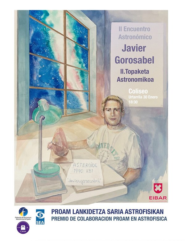 Jon Iraola alkateak eta Andoni Zabala kulturarako zinegotziak azaldu dituzte jardunaldiaren nondik norakoak, bideo-deiaren bidez parte hartu duen Ana Guijarro astrofisikoarekin batera. Guijarrok Calar Altoko (Almeria) teleskopioaren ardurduraduna da, eta Javier Gorosabel (1969-2015) astrofisiko eibartarrarekin aritu zen bertan lanean. Gogora ekarri dutenez, Gorosabel bere belaunaldiko astronomorik nabarmenetako bat izan zen mundu mailan, eta baita oso figura garrantzitsua ere gamma izpien leherketa kosmikoen ikerketan. Nabarmendu dutenez, haren karreraren azken 15 urteetan zientziari egindako ekarpenak erabakigarriak izan ziren, eta, gaur egun ere, nazioarte mailako astronomia-komunitateak goraipatu egiten ditu: “Astrofisikoaren heriotza goiztiarrak eten egin zuen bere karrera zientifiko bikaina, nazioartera begira ere proiekzio handia zuena, zalantzarik gabe”.
