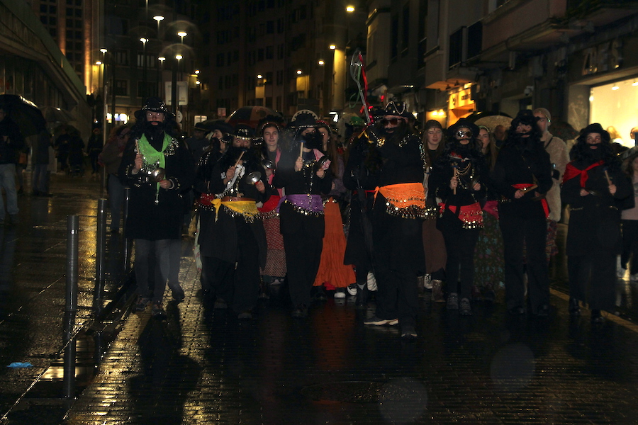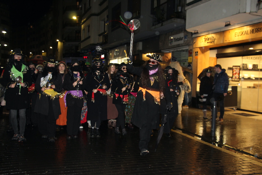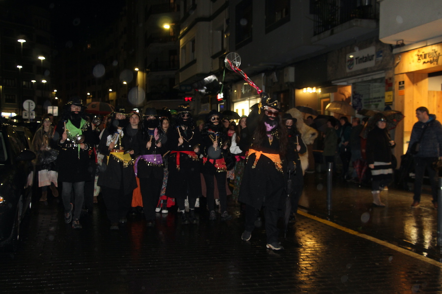 Eguraldiaren iragarpen guztiek bete-betean asmatu dute eta, aspaldiko partez, arratsaldean egin duen haize eta euriaren ondorioz, Kaldereroen kalejirarik ezin izan da egin. Irteera ordua aurreratu eta 19:30ean Errebalen elkartu dira, Ustekabe txarangaren erritmora bertan kantatu eta dantzatzeko. ...eta kitto! Euskara Elkarteak antolatutako pregoia ere bertan bota du Sofia Machinek, kantu eta guztiz. Euriak azkenean atertu egingo zuela zirudienez, azkenean Untzagaraino kalejiran joatea erabaki dute, baina bidean berriz ere euria hasi du, eta antxitxiketan joan behar izan dira, karparen babes bila.