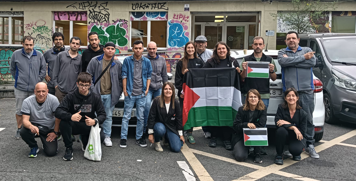 Horrekin batera, LAB, CCOO, UGT, ESK, STEILAS, CGT, Etxalde eta HIRU sindikatuek “Genozidioarekin negoziorik ez. Langileok Palestinarekin!” goiburupean deitutako lanuzteei erantzuten hasi dira lantegi ezberdinetan, eta horietako askok talde argazkia ere egin dute.