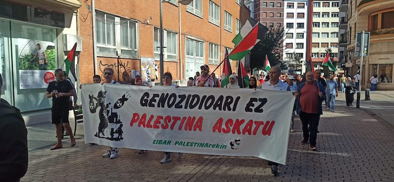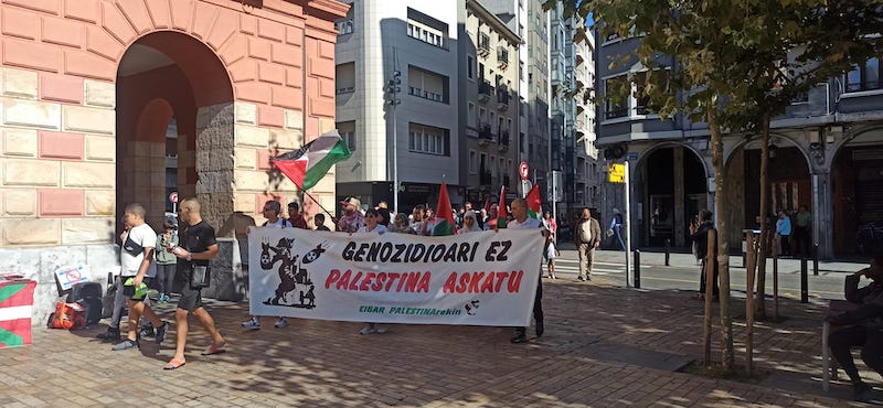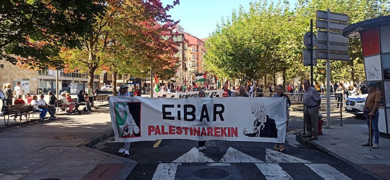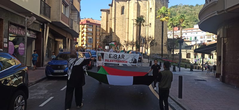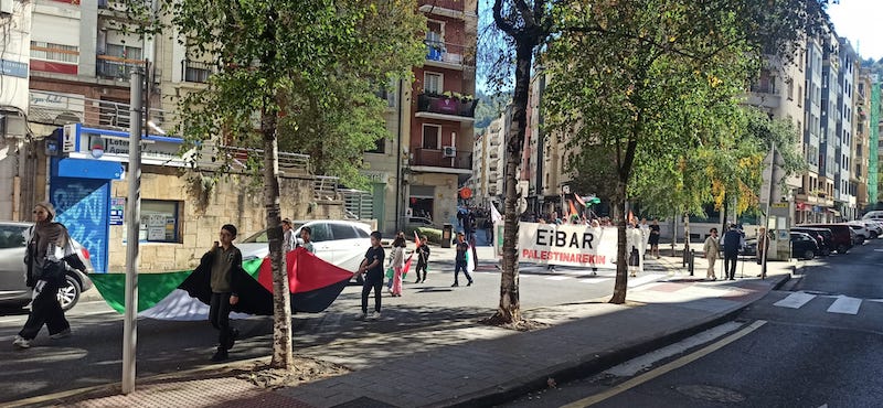 Palestinarekin bat egin dute herritarrek urriaren 12an, Eibar Palestinarekin plataformak antolaturiko mobilizazioan. “Palestina Askatu” eta “Genozidioa gelditu” lemapean, Gazako egoera “jasanezina” dela salatu zuten. Hainbat eragile sozial eta sindikal ere batu ziren ekimenera.