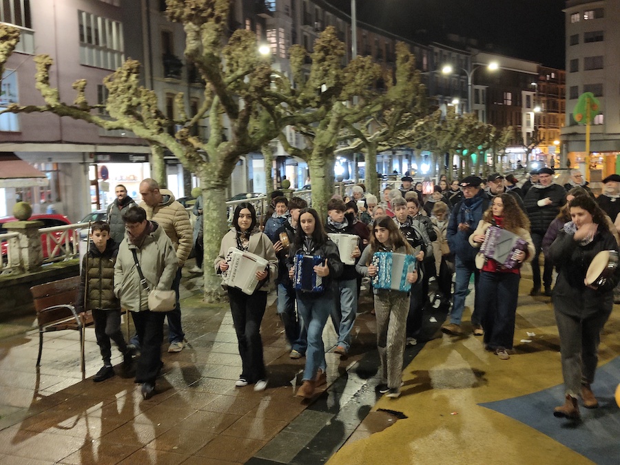 Nagusien Musika Tailerrekoak irten ziren lehenengo, eta ondoren Musika Eskolako koruak eta Kaleetan Kantuz taldekoak ibili ziren, Urkizun.